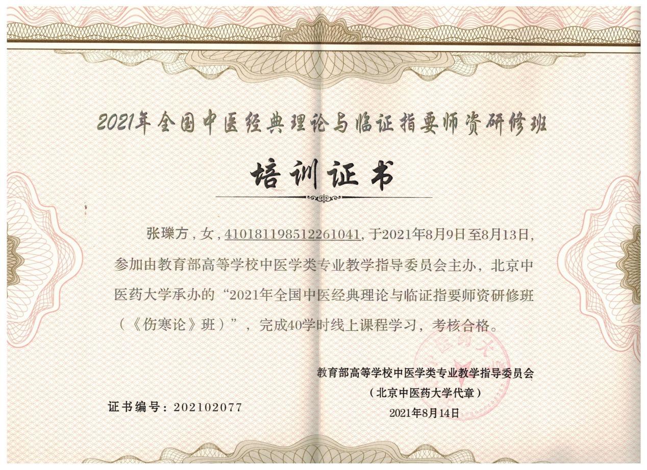 持续的学习与自我提升是每位老师不可或缺的使命,我院教研室张瓅方、杨淑慧和肖啸老师参加2021年全国中医经典理论与临证指要师资研修班。