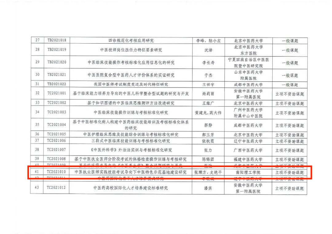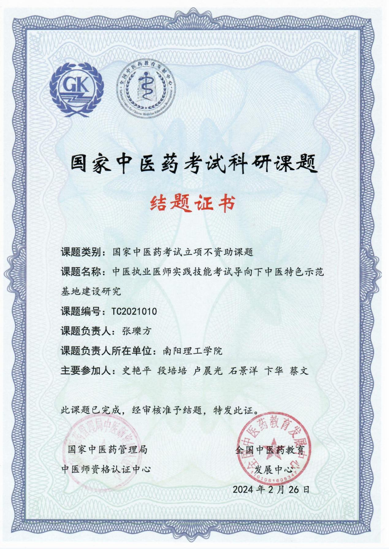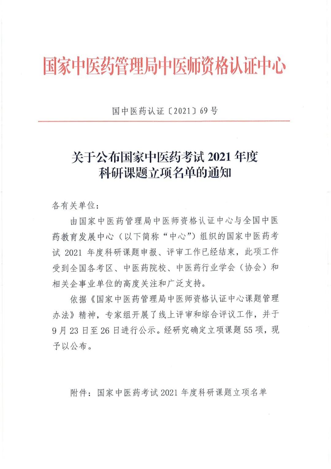 根据《国家中医药考试 2021年度科研课题研究方向》所列范围, 由国家中医药管理局中医师资格认证中心及全国中医药教育发展中心联合组织实施审核,教研室教师张瓅方主持项目顺利结题。